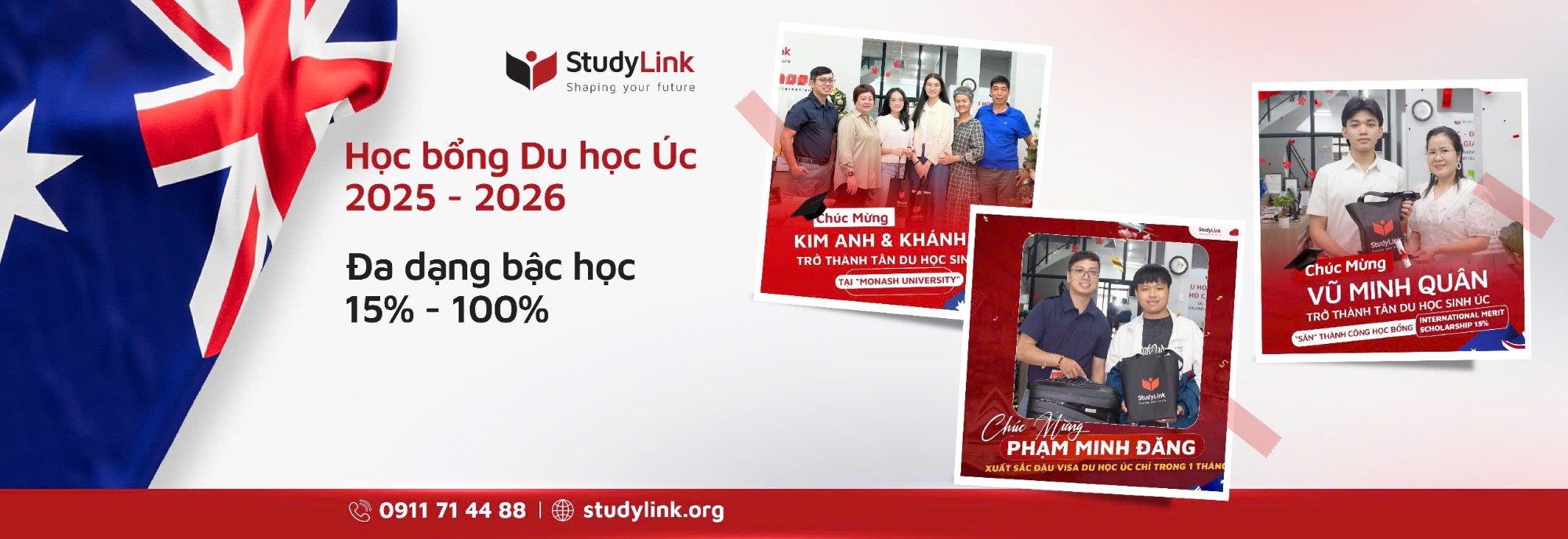 StudyLink – với hơn 21 năm kinh nghiệm, đã đồng hành cùng 20.000 học sinh và phụ huynh, giữ vững tỷ lệ đậu visa 99%, trở thành địa chỉ tư vấn đáng tin cậy cho hành trình du học của bạn.